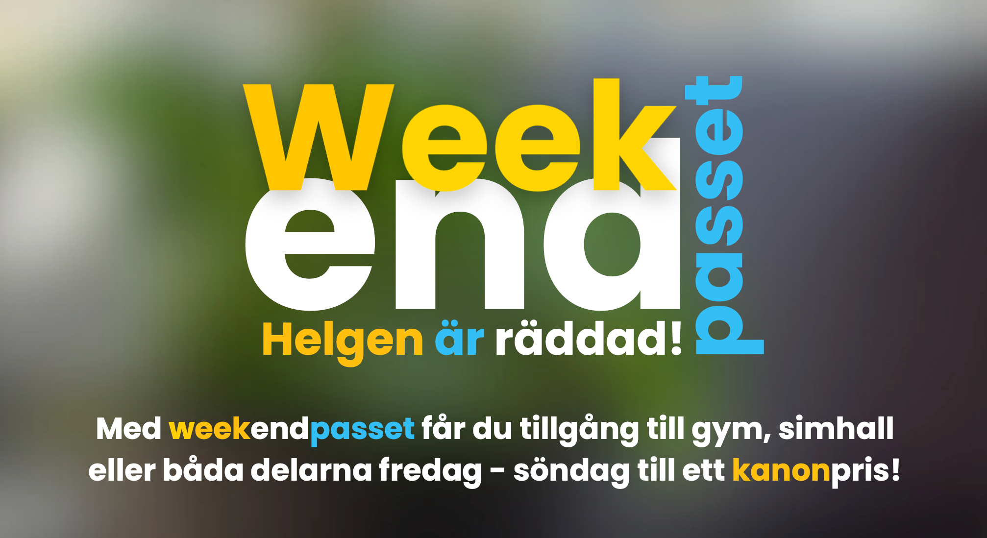 Med weekendpasset får du tillgång till gym, simhall eller båda delarna fredag - söndag till ett kanonpris!